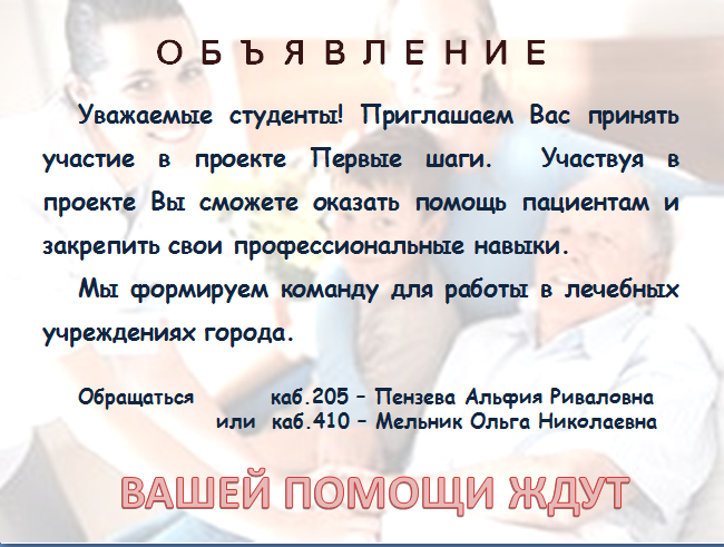 Приглашаем всех желающих принять участие в проекте Первые шаги.